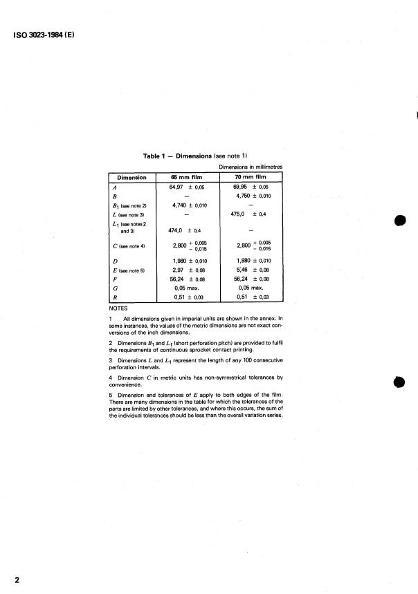 ISO 3023:1984 - Cinematography — 65 and 70 mm unexposed motion-picture film — Cutting and perforating dimensions Released:3/1/1984