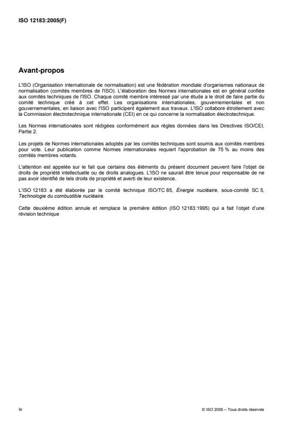 ISO 12183:2005 is classified under the following ICS (International Classification for Standards) categories: 27.120.30 - Fissile materials and nuclear fuel technology. The ICS classification helps identify the subject area and facilitates finding related standards.