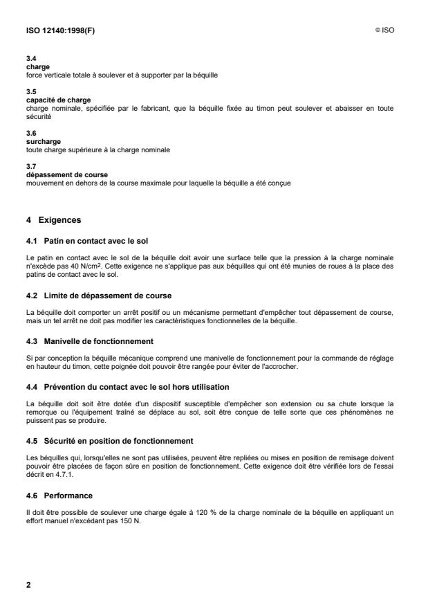 ISO 12140:1998 - Matériel agricole -- Remorques agricoles et matériel traîné -- Béquilles d'attelage