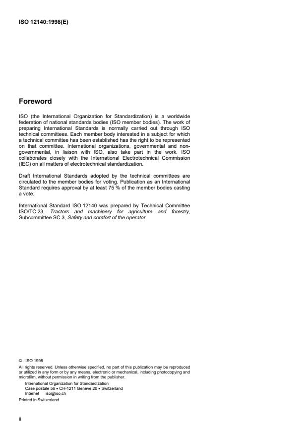 ISO 12140:1998 is classified under the following ICS (International Classification for Standards) categories: 65.060.01 - Agricultural machines and equipment in general. The ICS classification helps identify the subject area and facilitates finding related standards.