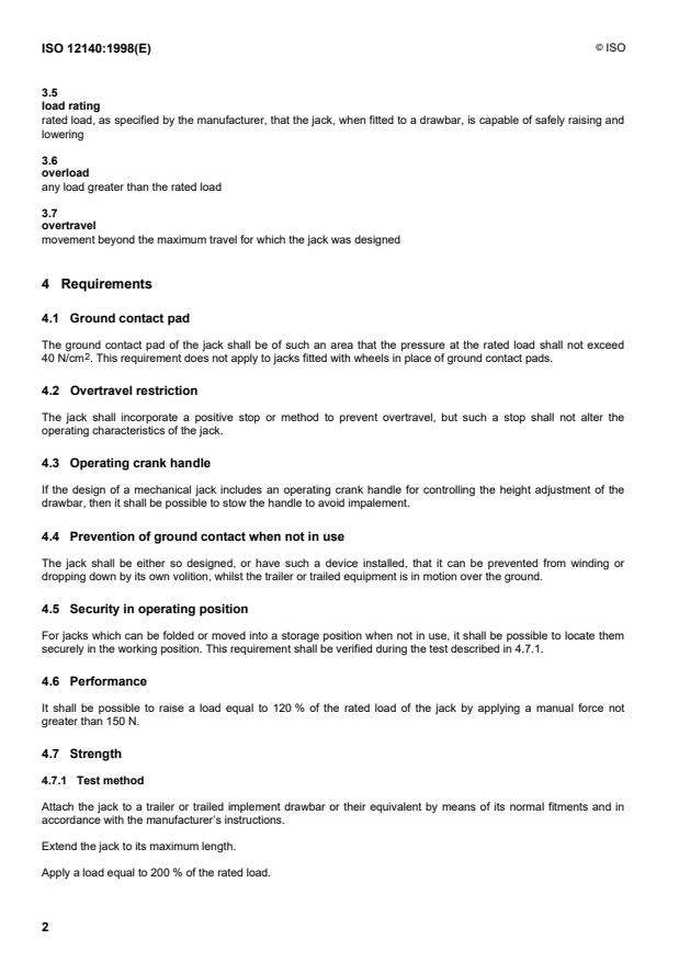 ISO 12140:1998 - Agricultural machinery -- Agricultural trailers and trailed equipment -- Drawbar jacks