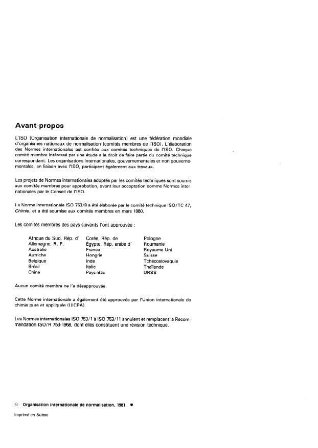 Les Normes internationales ISO 753/1 à ISO 7!53/11’ annulent et remplacent la Recom-