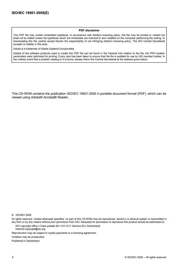 This CD-ROM contains the publication ISO/IEC 19501:2005 in portable document format (PDF), which can be