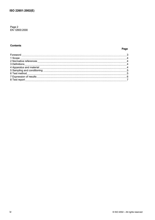 ISO 22651 was prepared by CEN (as EN 12800:2000) and was adopted, under a special “fast-track procedure”, by