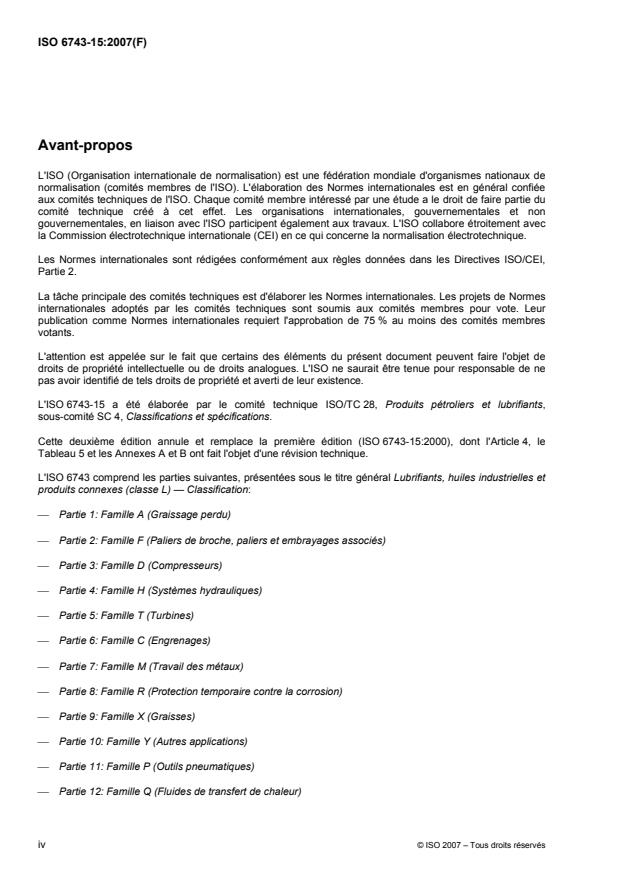 ISO 6743-15:2007 - Lubrifiants, huiles industrielles et produits connexes (classe L) -- Classification