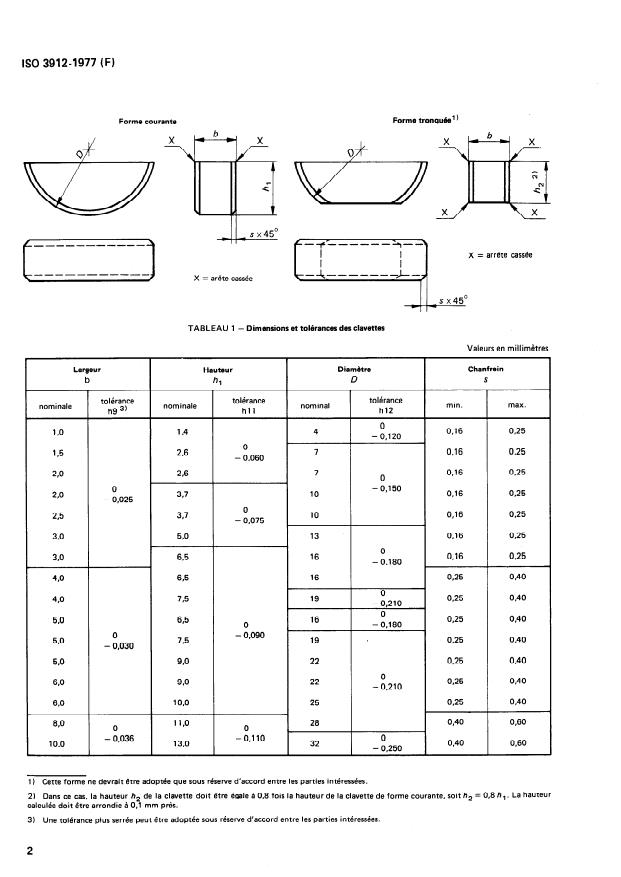 Descripteurs : clavette, clavette-disque, dimension, tolérance de dimension, désignation.