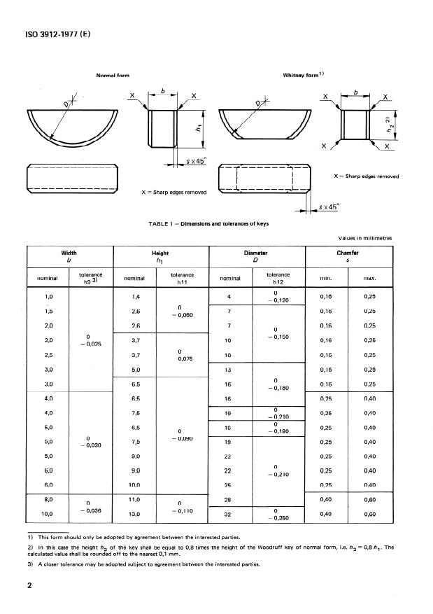 3 DIMENSIONS AND TOLERANCES OF KEYS A woodruff key shall be designated by its width and its