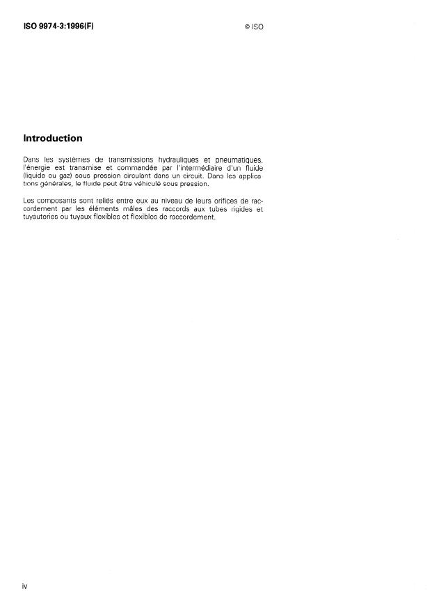 ISO 9974-3:1996 - Raccordements pour applications générales et transmissions hydrauliques et pneumatiques -- Orifices et éléments mâles a filetage ISO 261 et joint en élastomere ou étanchéité métal sur métal