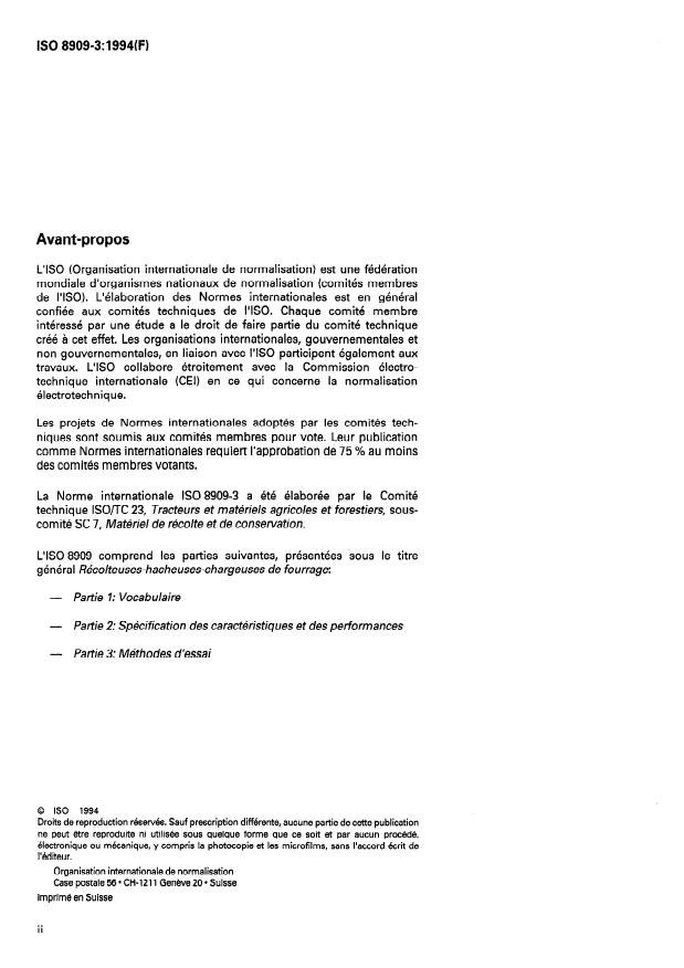 ISO 8909-3:1994 - Récolteuses-hacheuses-chargeuses de fourrage