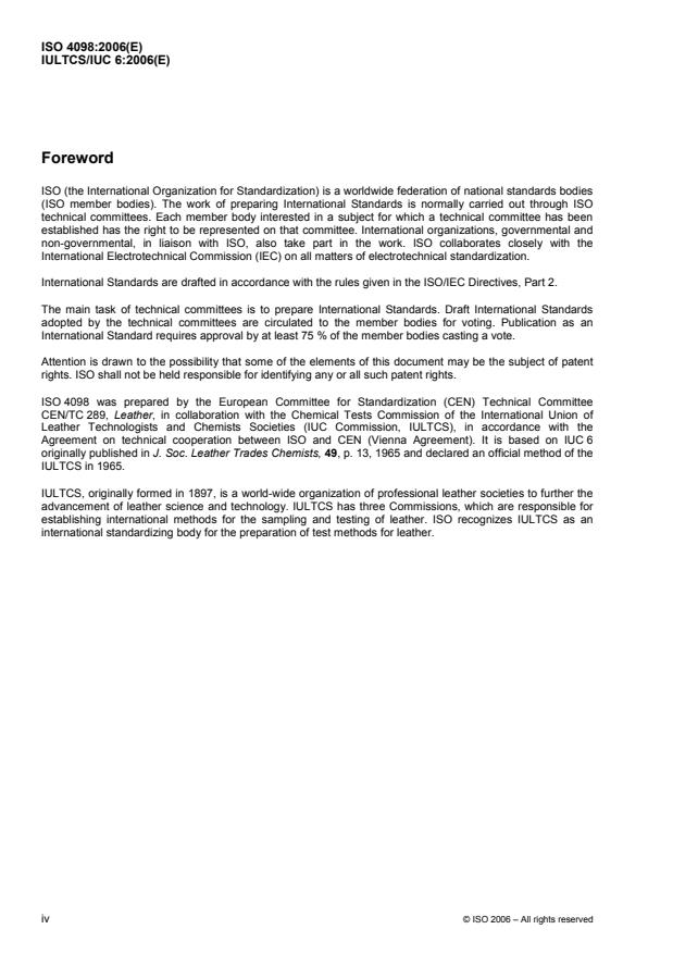 L'ISO 4098 a été élaborée par le comité technique CEN/TC 289, Cuir, du Comité européen de normalisation