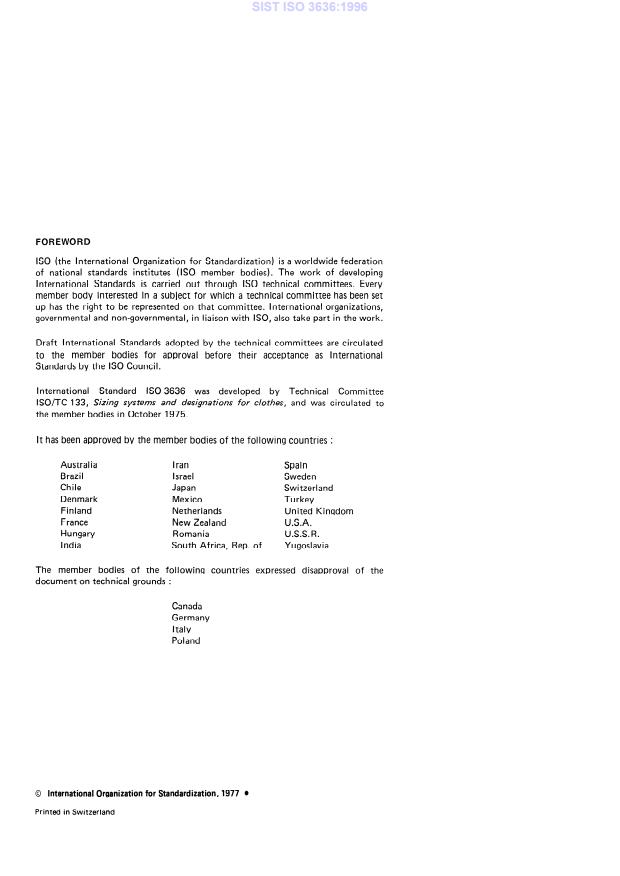 lSO/TC 133, Sizing Systems and designations for clothes, and was circulated to