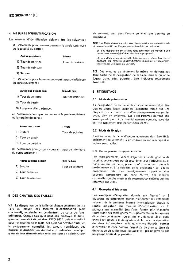 ISO 3636:1977 - Désignation des tailles de vetements -- Vetements de dessus pour hommes et garçons