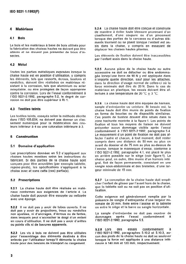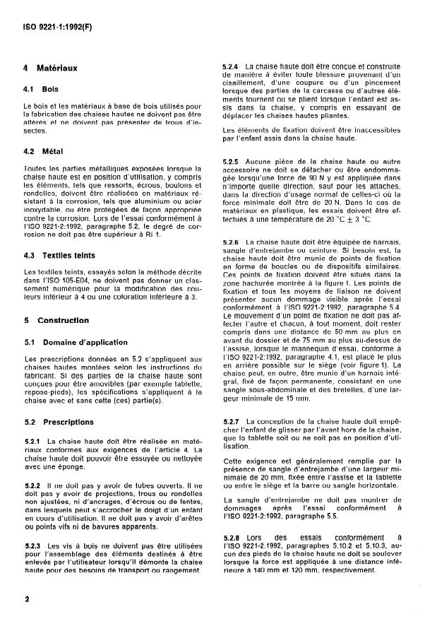 ISO 9221-2:1992, Ameublement - Chaises hautes
