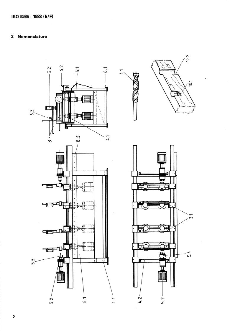 woodworking machines, multi-spindle boring machines, machine tool nomenclature, woodworking machinery terminology, ISO 9265, machine parts identification, woodworking tool standards, international woodworking standards, machine classification ISO 7984, woodworking safety devices, multi-language technical standards