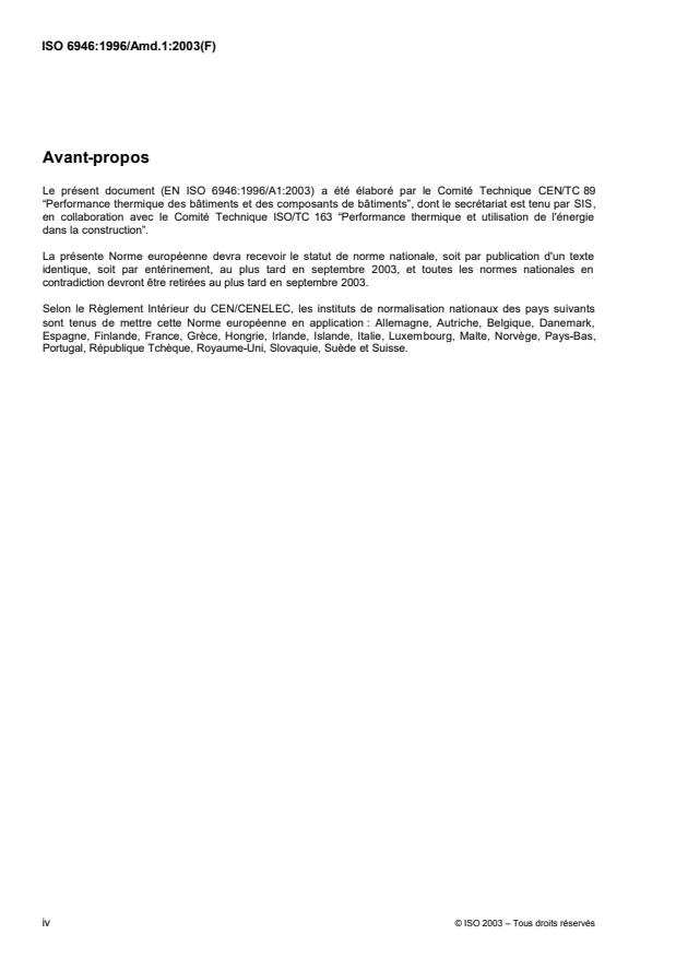 Amendment 1 to ISO 6946:1996 was prepared by the European Committee for Standardization (CEN) in