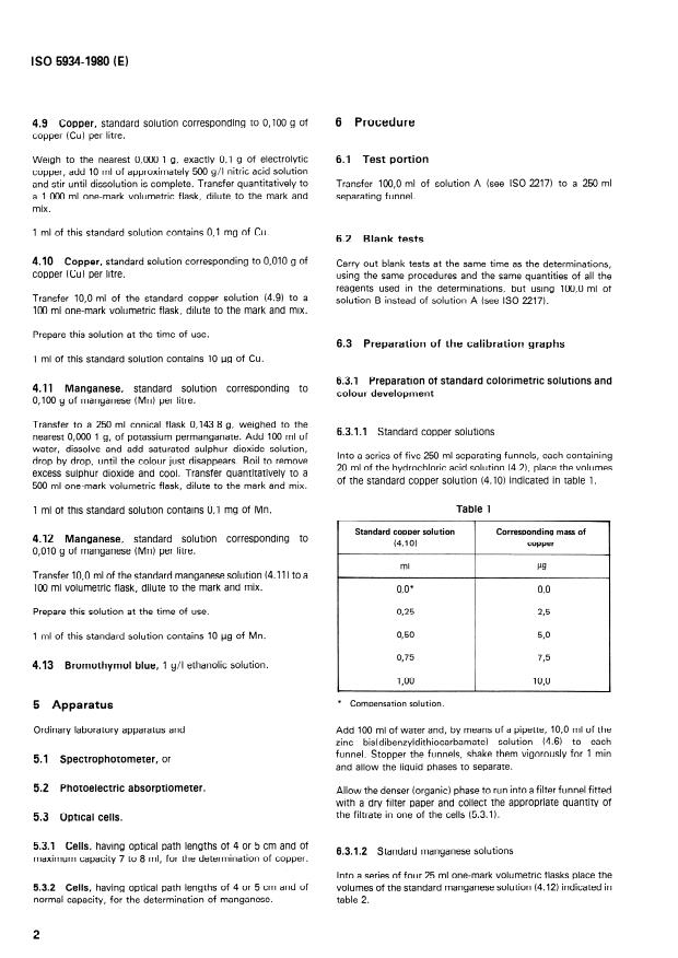 ISO 5934:1980 is a standard published by the International Organization for Standardization (ISO). Its full title is "Crude sodium borates for industrial use — Determination of alkali-soluble copper and manganese contents — Zinc bis(dibenzyldithiocarbamate) and formaldehyde oxime photometric methods". This standard covers: Describes a method applicable to products in which the alkalisoluble copper and manganese contents excess 0,25 and 0,5 mg/kg, respectively. The principle consists in successively determining the manganese and copper contents of the two coloured complexes obtained during the analysis, followed by photometric measurements at wavelengths of about 435 nm and 450 nm, respectively.