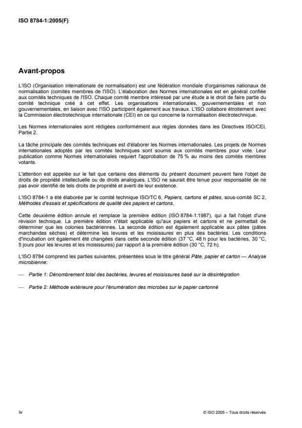 L'ISO 8784-1:2005 spécifie une méthode de détermination de la population microbienne des pâtes marchandes sèches, des papiers et des cartons. Le dénombrement utilise des milieux spécifiques. L'ISO 8784-1:2005 s'applique à la plupart des papiers et des cartons, en particulier à ceux de qualités destinées à entrer en contact avec des denrées alimentaires.