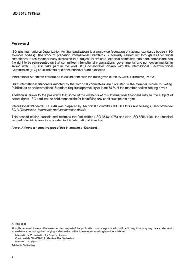 International Standard ISO 3548 was prepared by Technical Committee ISO/TC 123 Plain bearings, Subcommittee