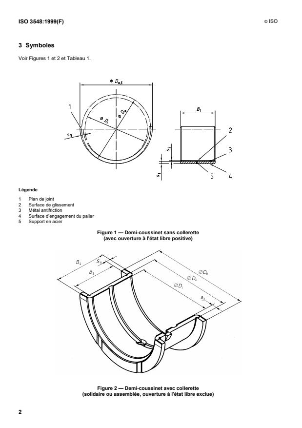 ISO 3548:1999 - Paliers lisses -- Demi-coussinets minces a ou sans collerette -- Tolérances, caractéristiques de conception et méthodes d'essai