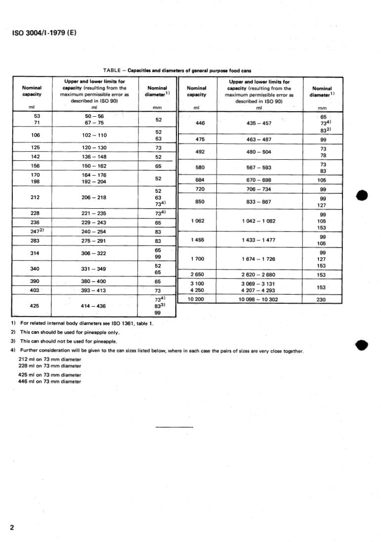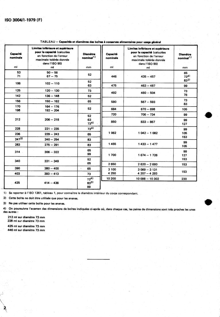 Descriptors : cans, metal packages, preserved food, dimensions, capacity, dimensional tolerances.