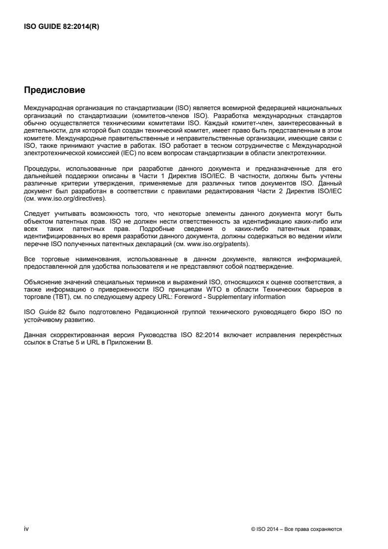 L'ISO Guide 82:2014 fournit aux rédacteurs de normes des lignes directrices pour la prise en compte de la durabilité dans la rédaction, la révision et la mise à jour des normes ISO et des produits apparentés. Il décrit une méthodologie pouvant être utilisée par les rédacteurs de normes ISO pour développer leur propre méthode de prise en compte de la durabilité selon le sujet spécifique.
