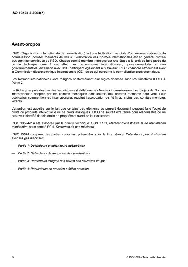 L'ISO 10524-2:2005 spécifie les exigences relatives aux détendeurs de rampes, tels que définis en 3.6, destinés à être raccordés à des bouteilles dont la pression d'alimentation maximale est de 25 000 kPa à 15 °C, ainsi qu'aux détendeurs de canalisations, tels que définis en 3.4, pour une pression d'alimentation maximale de 3 000 kPa et destinés à alimenter les réseaux de distribution des gaz médicaux suivants: l'oxygène; le protoxyde d'azote; l'air respirable; le dioxyde de carbone; les mélanges oxygène/protoxyde d'azote; l'air pour les instruments chirurgicaux; l'azote pour les instruments chirurgicaux; l'oxygène produit par les concentrateurs d'oxygène. L'ISO 10524-2:2005 s'applique aux détendeurs de rampes et de canalisations fournis sous la forme d'unités individuelles ou faisant partie d'éléments à assembler. L'ISO 10524-2:2005 ne s'applique pas aux détendeurs utilisés avec les systèmes d'aspiration.