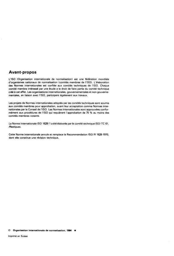 Cette Norme internationale annule et remplace la Recommandation ISO/R 1628-1970,