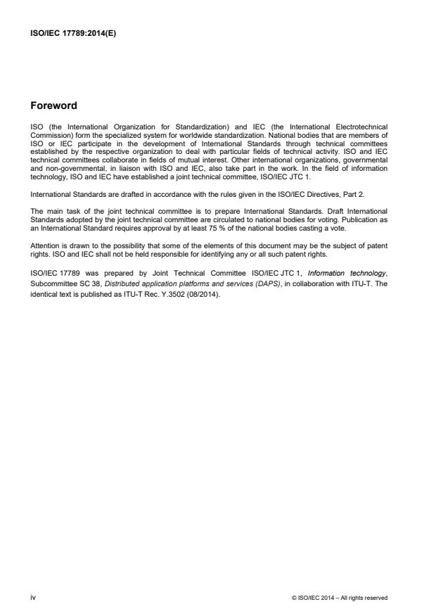 ISO/IEC 17789:2014 has the following relationships with other standards: It is inter standard links to ISO/IEC 22123-3:2023. Understanding these relationships helps ensure you are using the most current and applicable version of the standard.