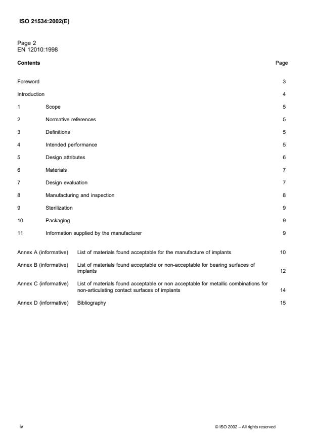 ISO 21534:2002 - Non-active surgical implants -- Joint replacement implants -- Particular requirements