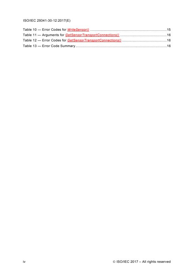 ISO/IEC 29341-30-12:2017 is a standard published by the International Organization for Standardization (ISO). Its full title is "Information technology — UPnP Device Architecture — Part 30-12: IoT management and control device control protocol — IoT management and control transport generic service". This standard covers: This part of Publicly Available Specification ISO/IEC 29341 specifies the characteristics of a networked service that offers sensor and/or actuator data transport capabilities to an independent networked entity known as a control point. ISO/IEC 29341-30-12:2017 defines the service SensorTransportGeneric:1 (in short TransportGeneric), which identifies Level 1 of the UPnP IoT Management and Control TransportGeneric:1 Service [10]. This Publicly Available Specification is applicable to Standardized DCPs of the UPnP Forum which include this service. This service enables UPnP clients to access sensors and/or actuators without needing a detailed knowledge of the target sensor or actuator or its connectivity to the UPnP network. Sensors and Actuators are instead treated a generic data sources or sinks. This service definition is compliant with the UPnP Device Architecture version 1.0 [1]. It defines a service type referred to herein as TransportGeneric service.
