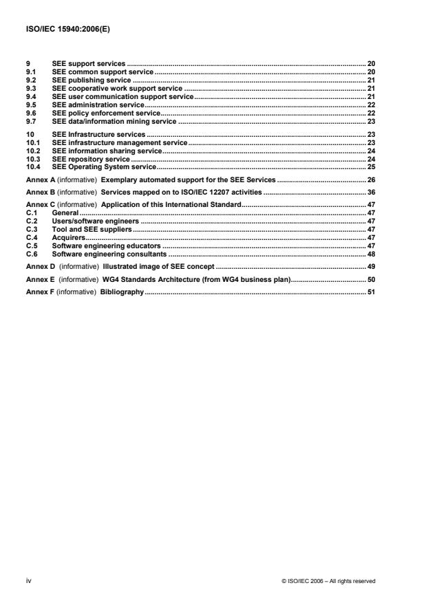 ISO/IEC 15940:2006 is a standard published by the International Organization for Standardization (ISO). Its full title is "Information Technology — Software Engineering Environment Services". This standard covers: ISO/IEC 15940:2006 defines the software engineering environment (SEE) services conceptually in a reference model that can be adapted to any SEEs to automate one or more software engineering activities. It describes services that support the process definitions as in ISO/IEC 12207 so that the set of SEE Services are compatible with ISO/IEC 12207. ISO/IEC 15940:2006 can be used either as a general reference, or to define an automated software process.