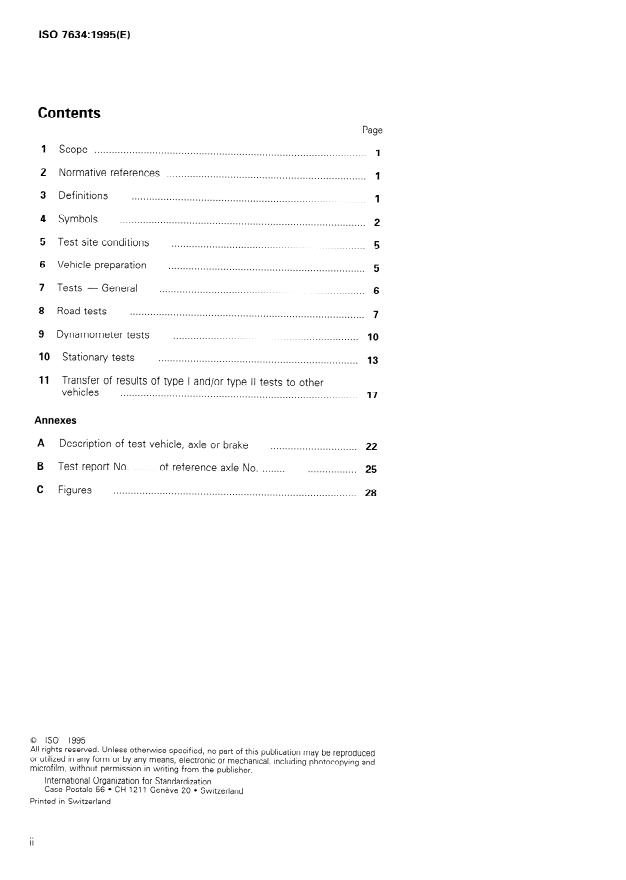 ISO 7634:1995 is a standard published by the International Organization for Standardization (ISO). Its full title is "Towed road vehicles — Compressed-air braking systems — Measurement of braking performance". This standard covers: Specifies a uniform test method for braking systems of full trailers, semi-trailers and centre-axle trailers with compressed-air braking systems, pending the harmonization of national and international braking standards, regulations and directives. The brake test procedure specified herein applies to these trailers corresponding to vehicle category 0 in UN-ECE Regulation No. 13.