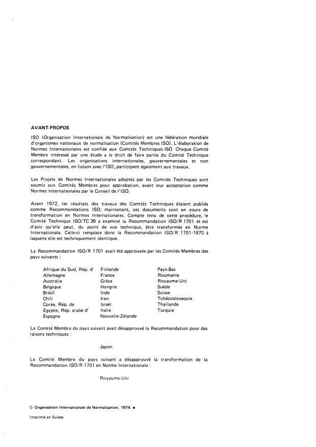 IS0 Recommendation R 1701 was approved by the Member Bodies of the