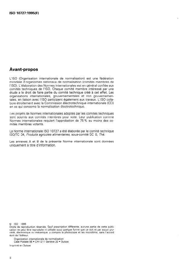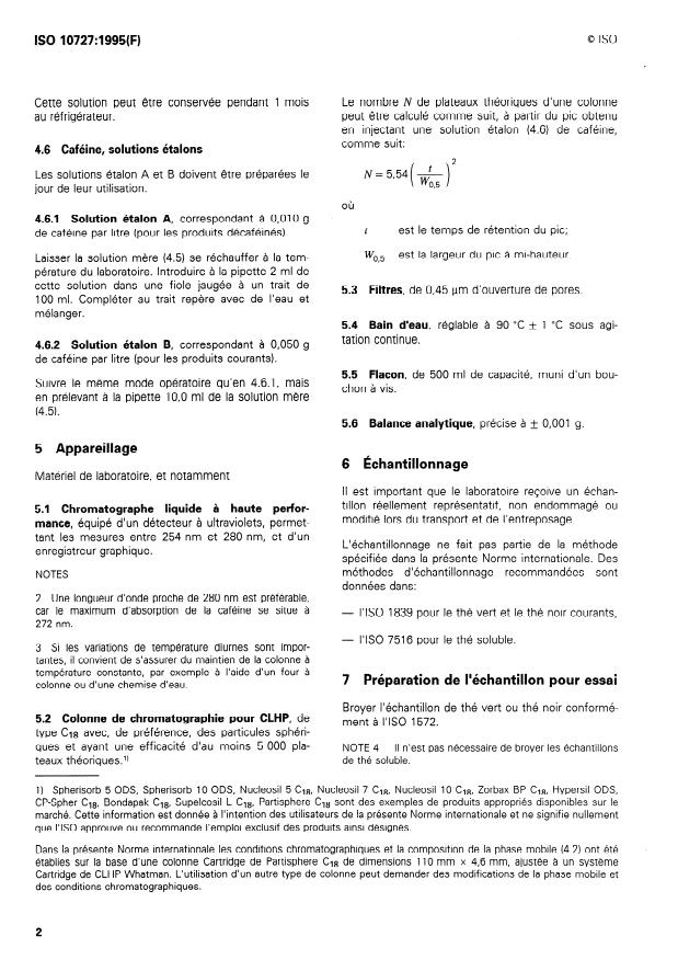 ISO 10727:1995 - Thé et thé soluble sous forme solide -- Détermination de la teneur en caféine -- Méthode par chromatographie liquide a haute performance