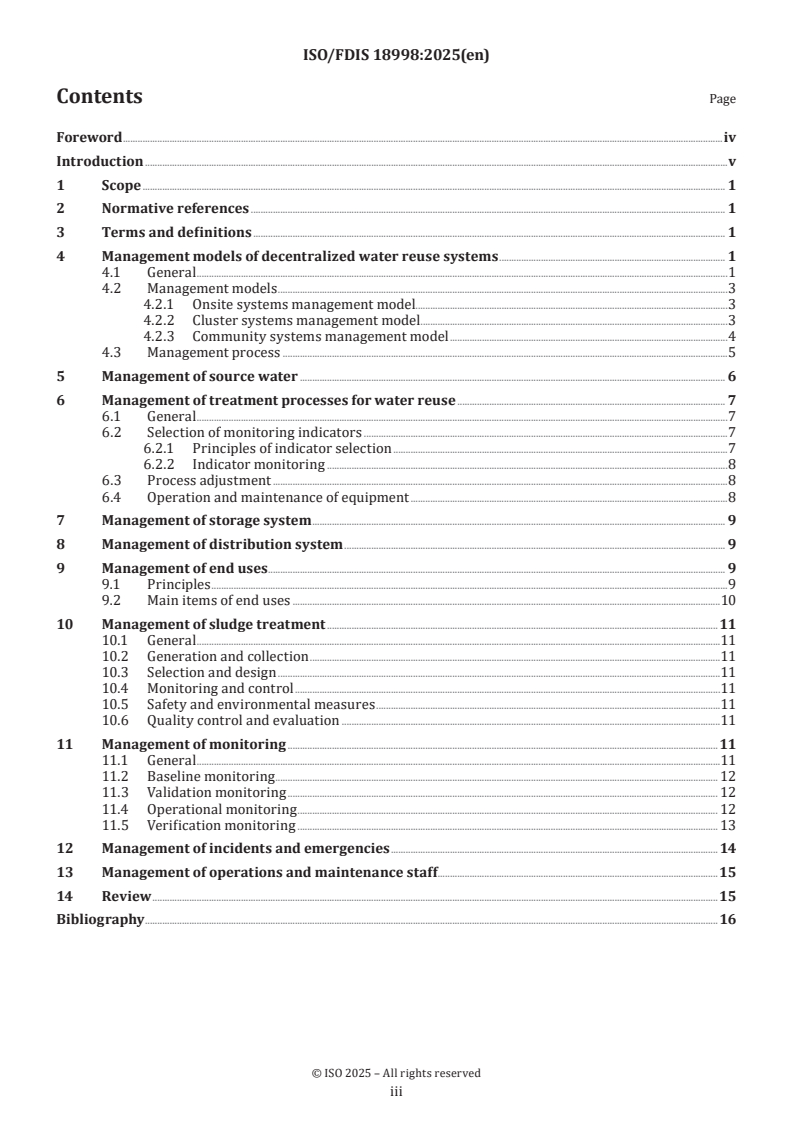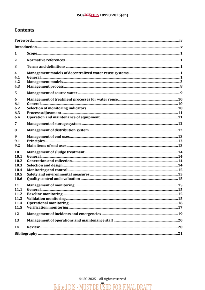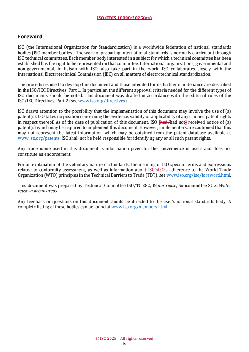 REDLINE ISO/FDIS 18998 - Water reuse in urban areas — Guidelines for decentralized water reuse system — Management of a decentralized water reuse system Released:10/10/2025