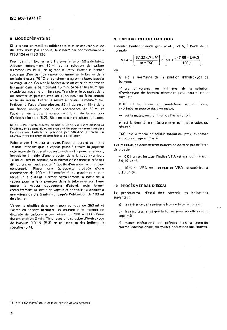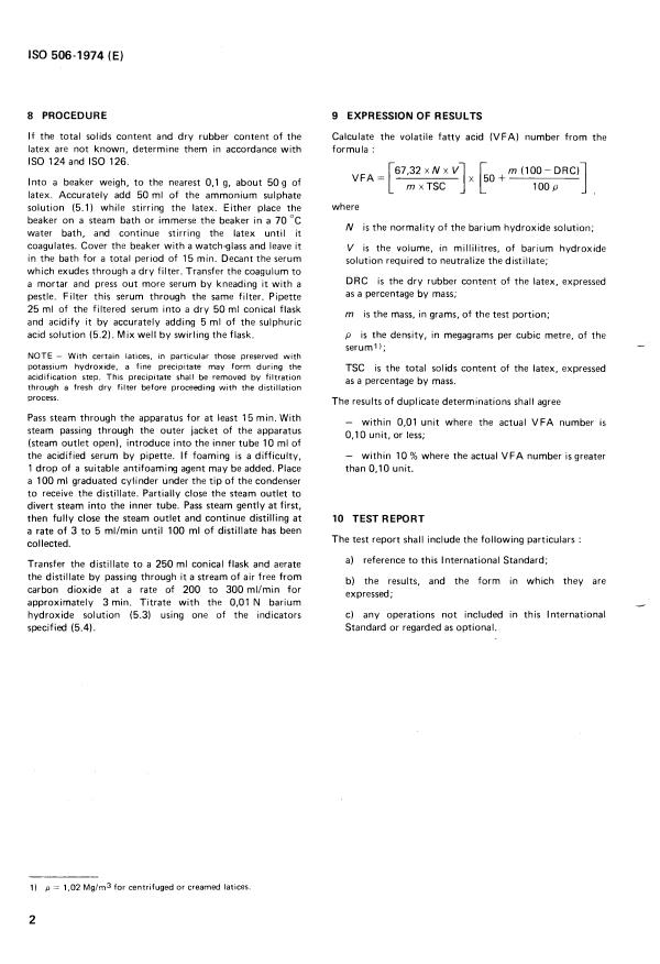 ISO 506:1974 - Natural rubber latex -- Determination of volatile fatty acid number