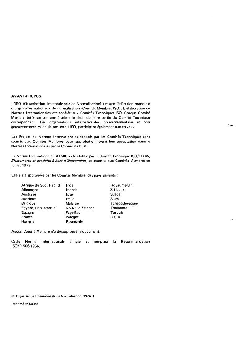International Standard IS0 506 was drawn up by Technical Committee ISO/TC 45,
