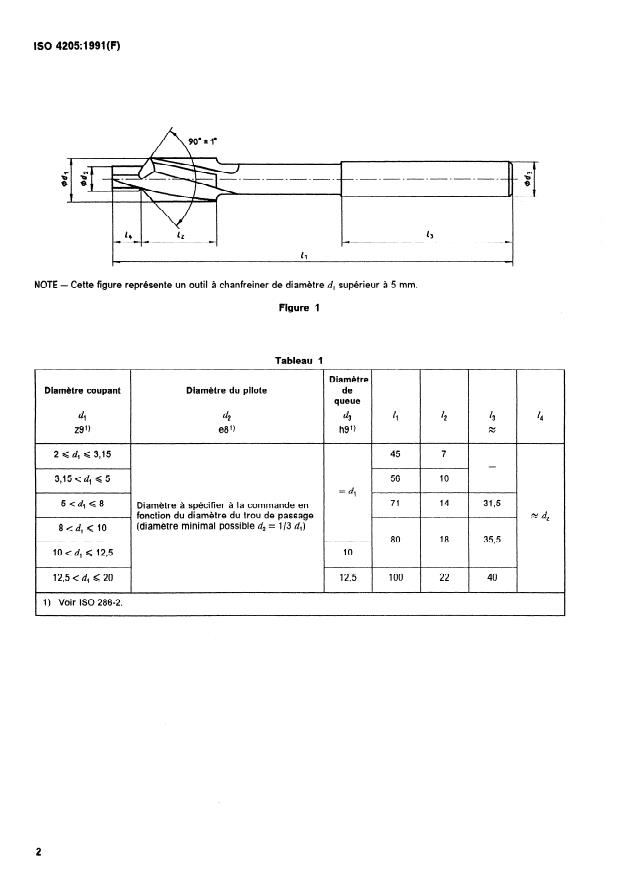 ISO 4205:1991 - Outils a chanfreiner a 90 degrés, a queue cylindrique et pilote fixe