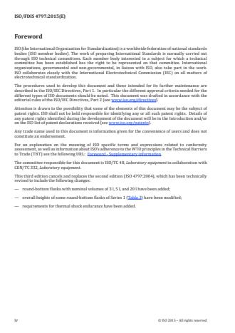 ISO 4797:2015 is an international standard developed by the International Organization for Standardization (ISO) that specifies requirements for boiling flasks with conical ground joints used in laboratory settings. Designed for general laboratory purposes, the standard covers a series of boiling flasks made from borosilicate glass 3.3, ensuring durability, compatibility, and safety during typical lab operations. The third edition of this standard, published in December 2015, updates prior versions to include new flask volumes, refined dimensions, and thermal shock endurance testing.