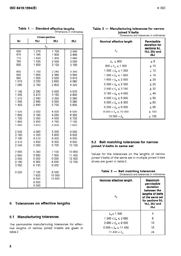 ISO 8419:1994 - Belt drives -- Narrow joined V-belts -- Lengths in effective system