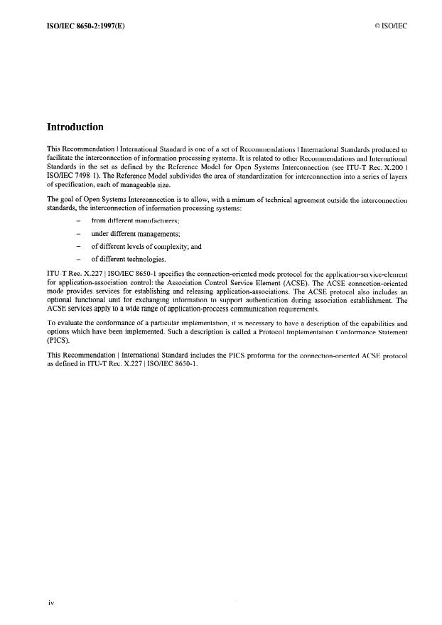 - Software and firmware vendors implementing ACSE use the PICS proforma to document supported features and claim conformance to ISO/IEC 8650‑1 (ITU‑T X.227).
