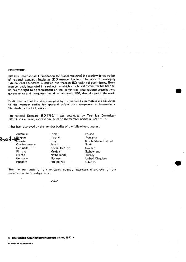 International Standard IS0 4759/l I I was developed by Technical Committee