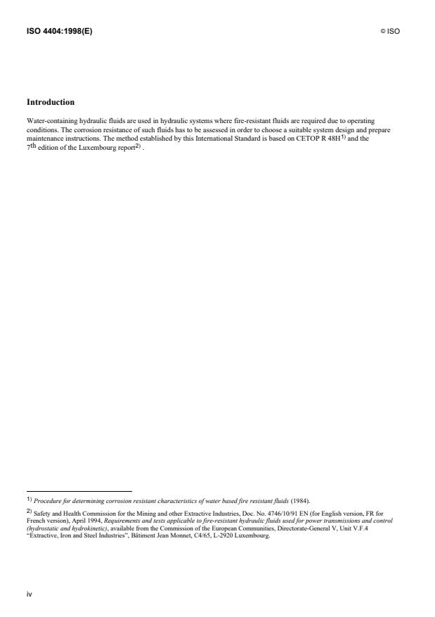 ISO 4404:1998 - Petroleum and related products -- Determination of the corrosion resistance of water-containing fire-resistant fluids for hydraulic systems