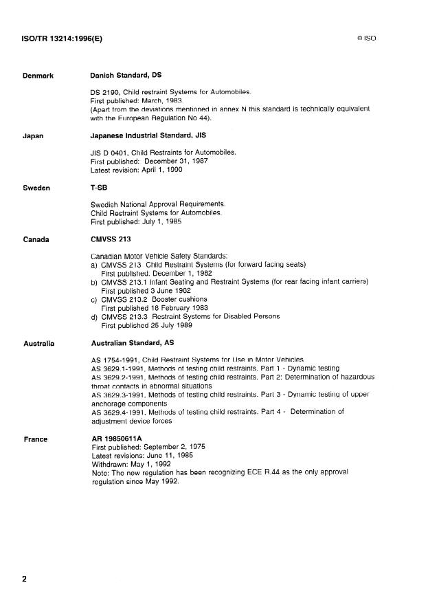 This IS0 Technical Report is a compilation of major regulations and standards in the field of Child Restraint