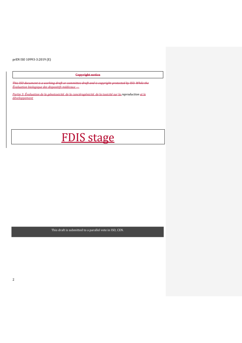 REDLINE ISO/FDIS 10993-3 - Biological evaluation of medical devices — Part 3: Evaluation of genotoxicity, carcinogenicity, reproductive toxicity and developmental toxicity