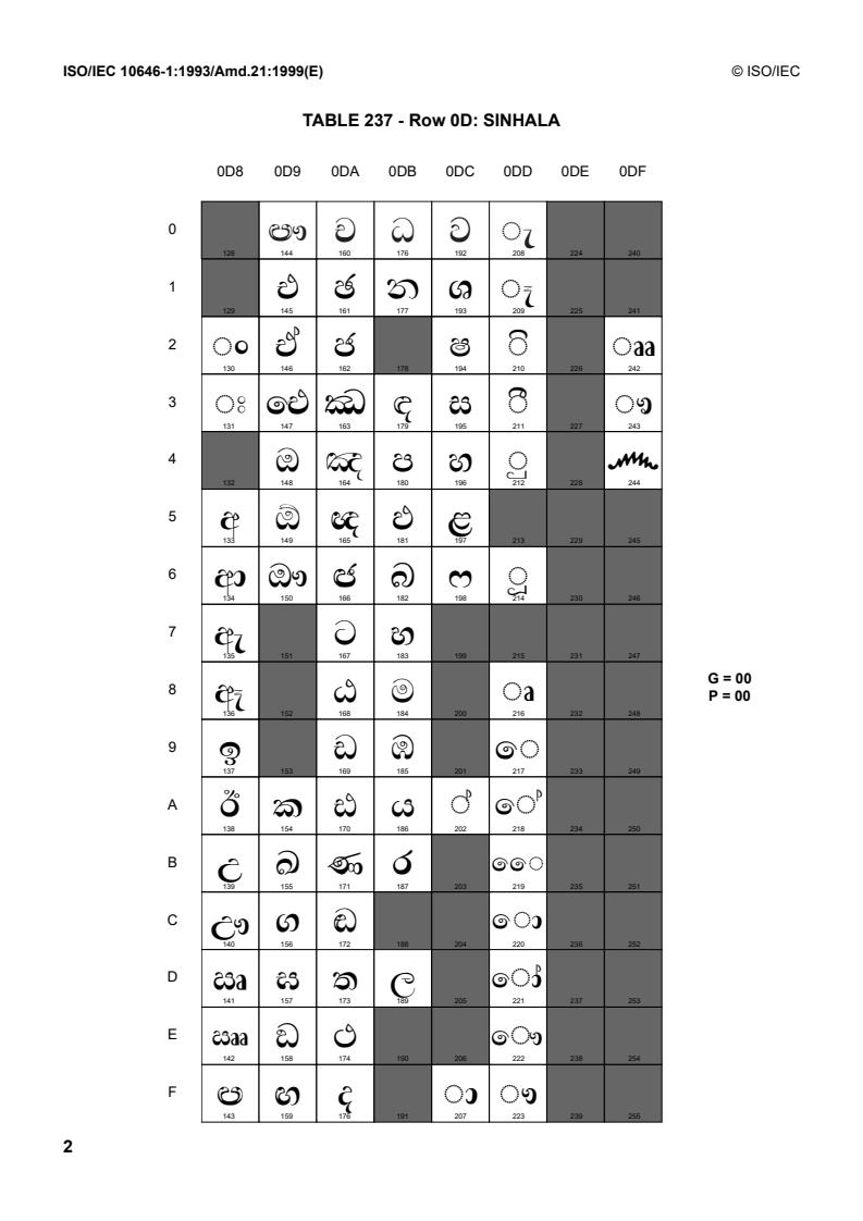 Information technology — Universal Multiple-Octet Coded Character Set (UCS) — Part 1: Architecture and Basic Multilingual Plane — Amendment 21: Sinhala