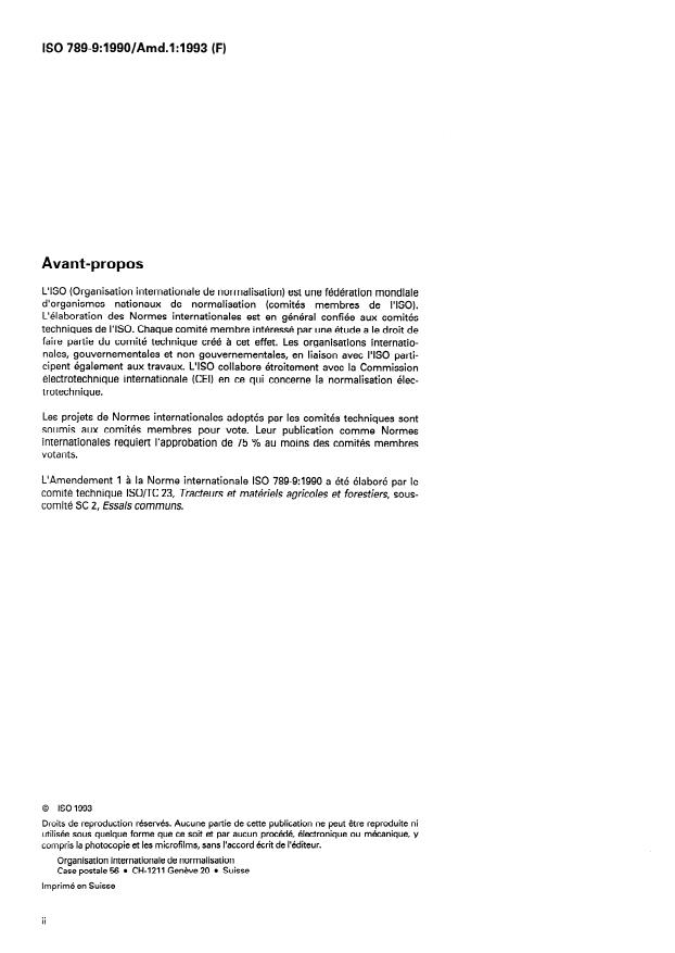 Tracteurs agricoles — Méthodes d'essai — Partie 9: Essais de puissance à la barre d'attelage — Amendement 1