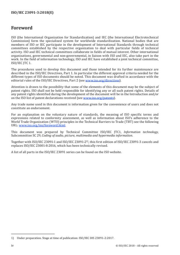 ISO/IEC 23091-3:2018 has the following relationships with other standards: It is inter standard links to ISO/IEC 23091-3:2018/Amd 1:2022, ISO/IEC 23001-8:2016. Understanding these relationships helps ensure you are using the most current and applicable version of the standard.