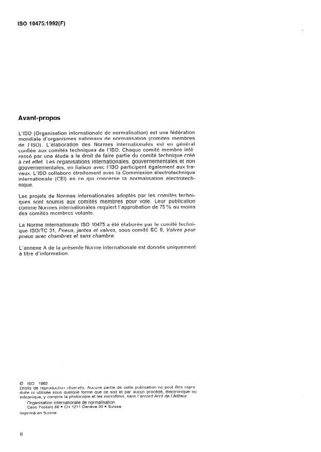 ISO 10475:1992 is a standard published by the International Organization for Standardization (ISO). Its full title is "Valves for tubeless tyres and valves for tubes — Identification system for valves and their components". This standard covers: Valves are identified by a four-character code (two letters plus two digits), valve components by a three-character code (one letter plus two digits).
