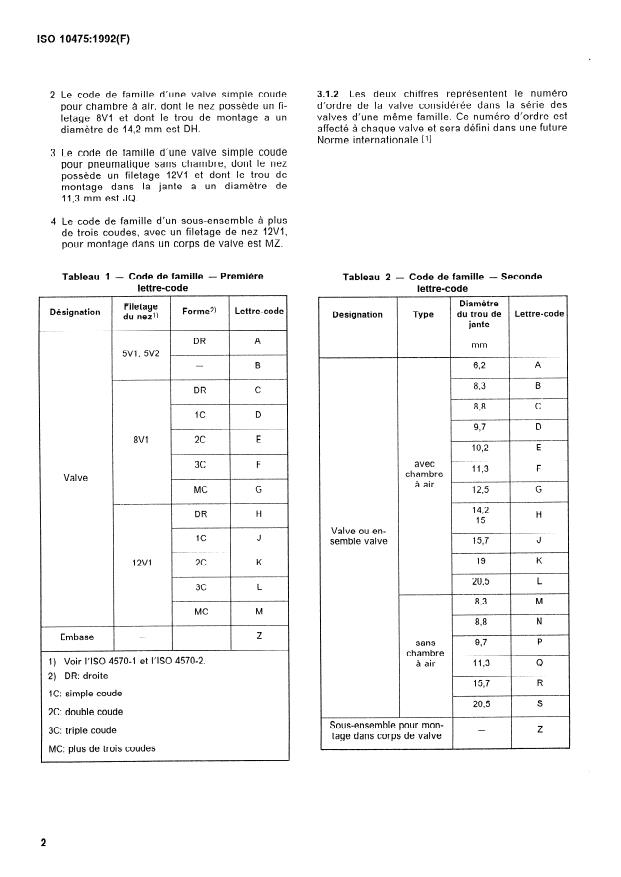 ISO 10475:1992 - Valves pour pneumatiques sans chambre et valves pour chambres a air -- Systeme d'identification des valves et de leurs composants
